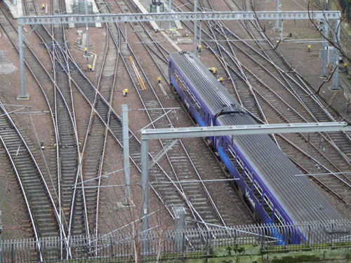 Patricia: We liked the blue train appearing among the multiple patterns of the train lines