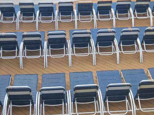 Bruce: Someone jokingly said "where are the towels?", but we thought a splash of colour might have added yet more to this picture of loungers on board ship.