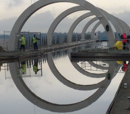 Ingrid: we particularly liked this picture of the Falkirk Wheel, with its reflected patterns and the splashes of colour at the sides.