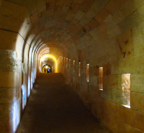 Sonia: inside the fort at Mahon, Menorca, where there was very little light. The flash of light at the top of the picture is someone's torch. A tripod was used with no flash. 1 second at F8.0, ISO 1600.