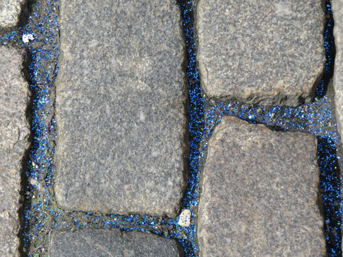 Glitter caught in the paving cracks during the Edinburgh Festival - an interesting picture taking advantage of a chance opportunity.