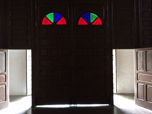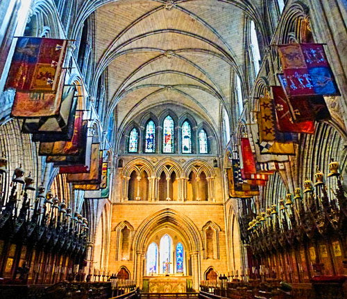 Liam took his pictures in St Patrick's Cathedral, Dublin. We liked the effect of the coloured light falling on the window frames.