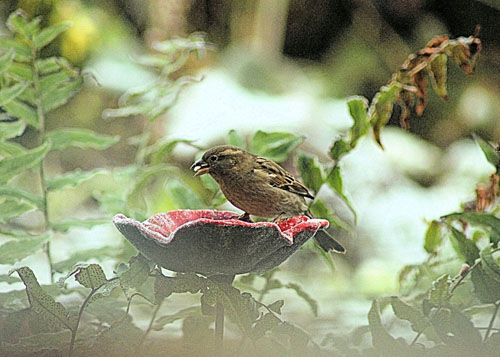 Liam: Sparrow caught with food in its beak. Slightly grainy due to the high ISO (1600) necessary for the high shutter speed.