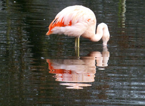 Flamingo and reflection. It was suggested that this could be cropped on the left hand side to make a square image.