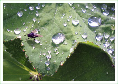 Perfect shot capturing the drops of water on leaves
