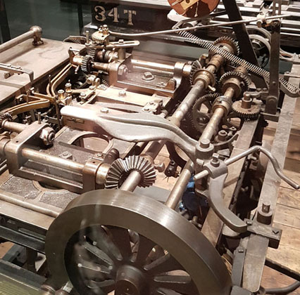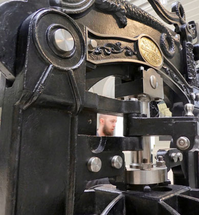 Sue chose her own picture of a Press which had a face reflected in the metal - humanity amongst the metallic.