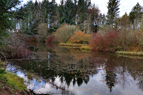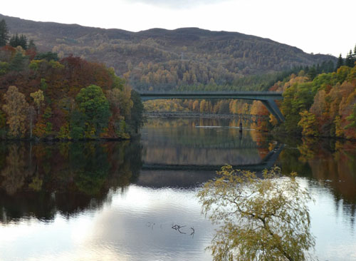 Marjorie chose her own picture taken at Loch Faskally, because of the way the trees on the left and the jetty on the right were both reflected.