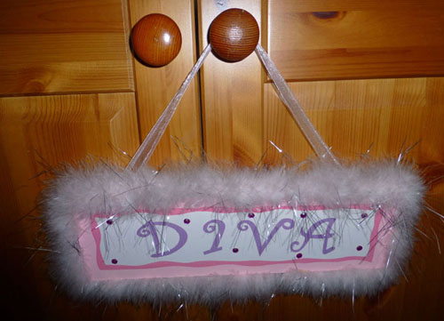 Ruth chose Irene's "Diva" because of the contrast of the shiny door knobs in a comforting warm pine colour with the fluffy texture of the vivid pink notice. She thought it made an intriguing story.