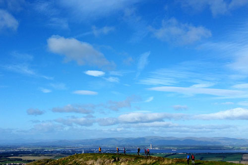 Martin and Bob were in agreement over Martin's sky filled picture with a line of walkers. Bob said the foreground adds to the picture giving a sense of scale. The walkers out enjoying the activity re-inforce the picture.