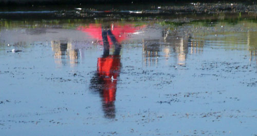 Spot the red! We were all amused by Bob's choice. A beautiful picture, but if you look carefully you will see a tiny spot of red on the far bank, which is actually a person, also reflected in the water, hence the title for this picture "Visitor".