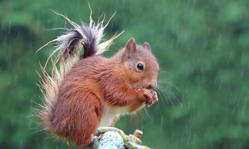 Athol was pleased with his picture of a squirrel caught in the rain. he thought it was feeling depressed.