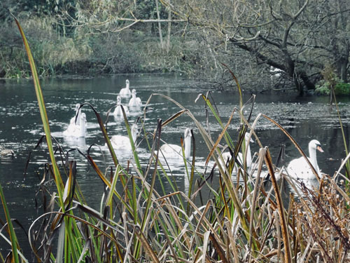 Ruth and also Vincent chose Ruth's family of swans, framed with grasses in the foreground. Vincent said a family of swans setting out together at this time of year strongly evokes ideas of spring. They almost describe the shape of an S, which he found interesting.