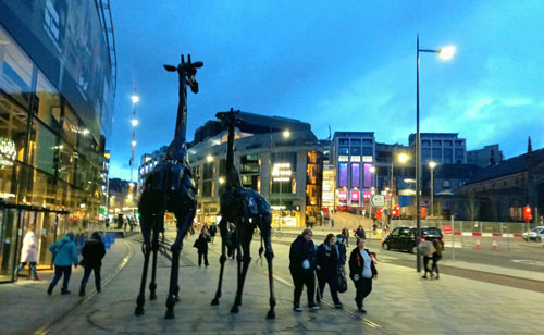 Vincent chose his giraffes, liking the ambiguity of the picture, the colours, and the contrast between the noble giraffes and the much less elegant, scurrying and slightly clumsy humans.