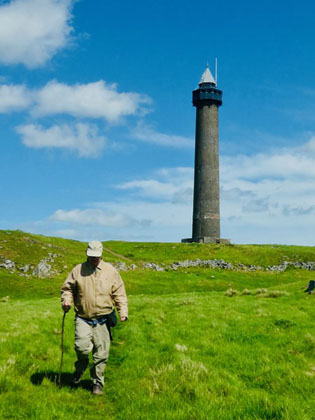 Ruth herself chose her soft figure of a man walking downhill with the hard tower behind him - Fragile and Strong.