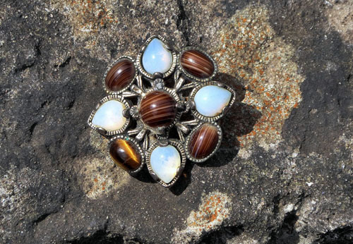 Morag enjoyed the Opposites challenge. She chose her brooch with its smooth stones against the rough background. The colours went so well together also.