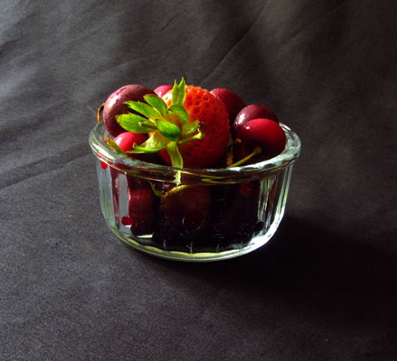 Sonia herself and also Sue liked this one. Sonia had thought to add interest to the glass with brightly coloured fruit. Sue liked the light on the cherries.