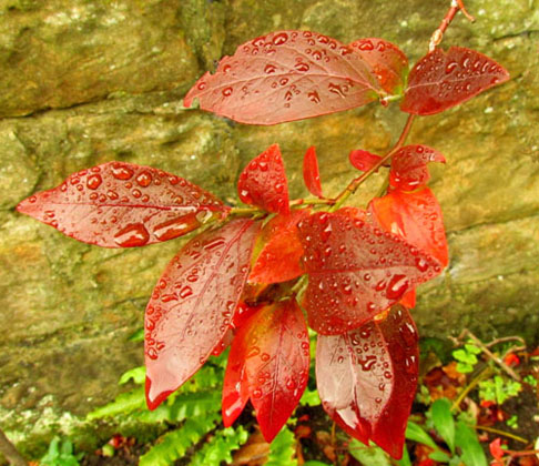 Sonia chose Les's brightly coloured blueberry leaves, well splashed with water, against the nicely contrasting background.