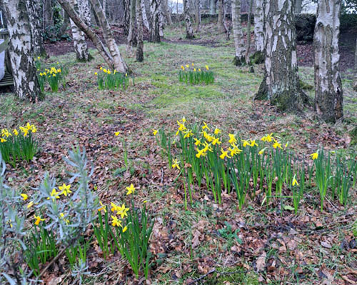 Sonia liked the way the trees formed a frame for the clumps of daffodils