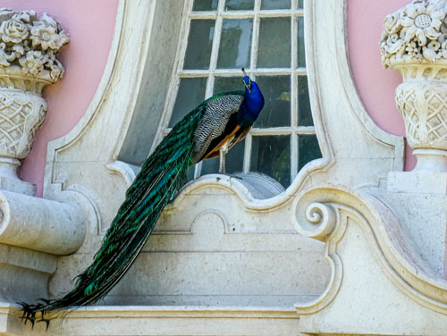 We all liked this one - the curved tail of the peacock follows the curve of the window frame.