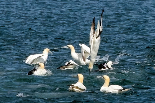 Martin thought Mary's picture just caught the moment. Mary said this picture of gannets diving was quite difficult to take .