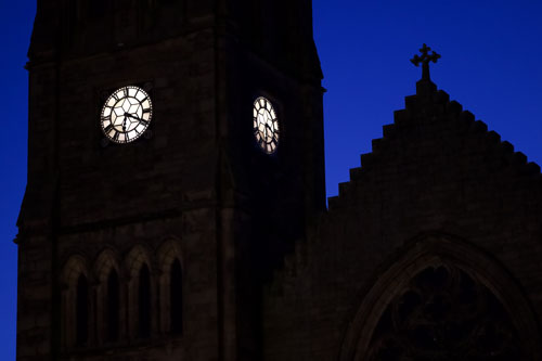 Brian was pleased with his shot of Peebles Parish Church, taken in the early evening, so that the building was dark.