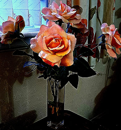 Ruth thought the wallpaper pattern added to the texture in Gillian's indoor picture of flowers.