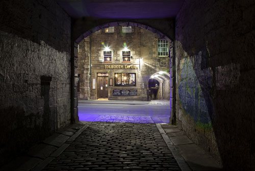 Joe was very pleased with his picture of the Tolbooth Tavern, taken from the tunnel opposite. The "star" lights are a bonus.
