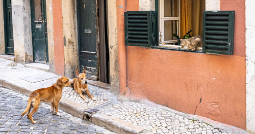 Morag liked Sandra's extra shot, of dogs and a cat in a "stand-off". Morag thought Sandra had just caught the moment. She also liked the distressed doors.