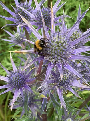 Sue was pleased with her bee climbing on a Sea Holly (Eryngium).