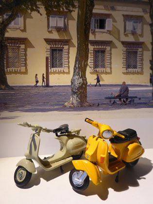 Morag had put a lot of effort and imagination into setting up these pictures. The street background is a poster propped up while the tiny model motorbike was arranged to create a street scene. Ruth admired the care in setting the picture up to tell a story.
