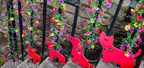 Sandra thought her picture of red dogs and flowers up a stairway was quirky.
