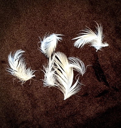Sonia was pleased with her feathers on velvet, lit by a simple table lamp.